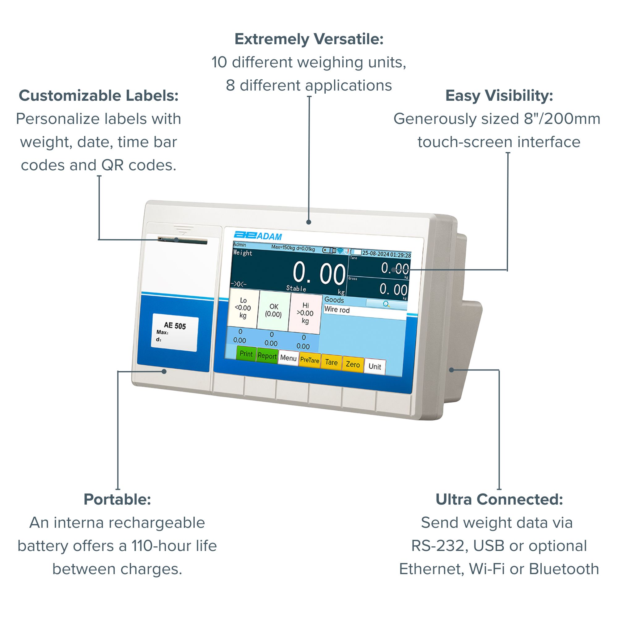 Offering innovative stock and inventory control features, the AE 505 indicators combine user-friendly touch-screen controls with advanced weighing technology, offering users enhanced accuracy, built-in connectivity and all-in-one label printing convenience.